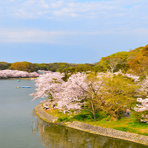 池の周囲には約200本の桜があり、春は薄桃色、夏は緑に衣替えし、秋には黄色から赤まで種々の葉に彩られます。四季折々の美しい風景を、ぜひボートに乗りながら楽しんでみてください。