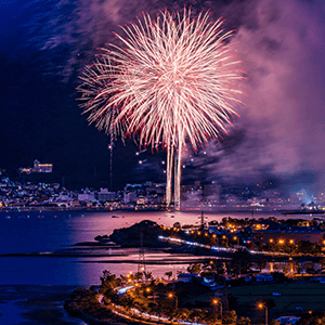 長野県のほぼ中央に位置する諏訪湖は、周囲約16kmの信州一大きな湖。春は並木道の桜やカリンに彩られ、夏は花火、秋は諏訪湖を囲む山の紅葉、冬は御神渡りと四季折々魅力にあふれています。